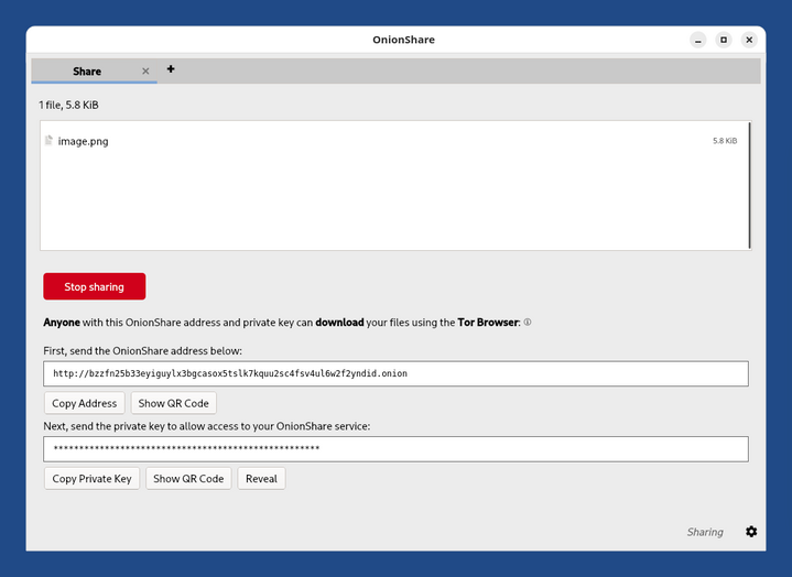 Sharing files, websites, and chat rooms using OnionShare
